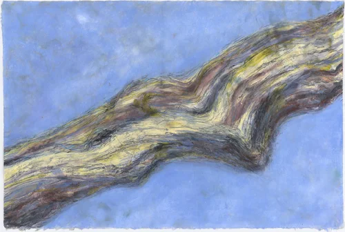 left: Water, Rock & Soul 4, European, Chinese, Japanese inks, pigments, oil pastel on Chinese paper, 35cm x 45cm, 2019.